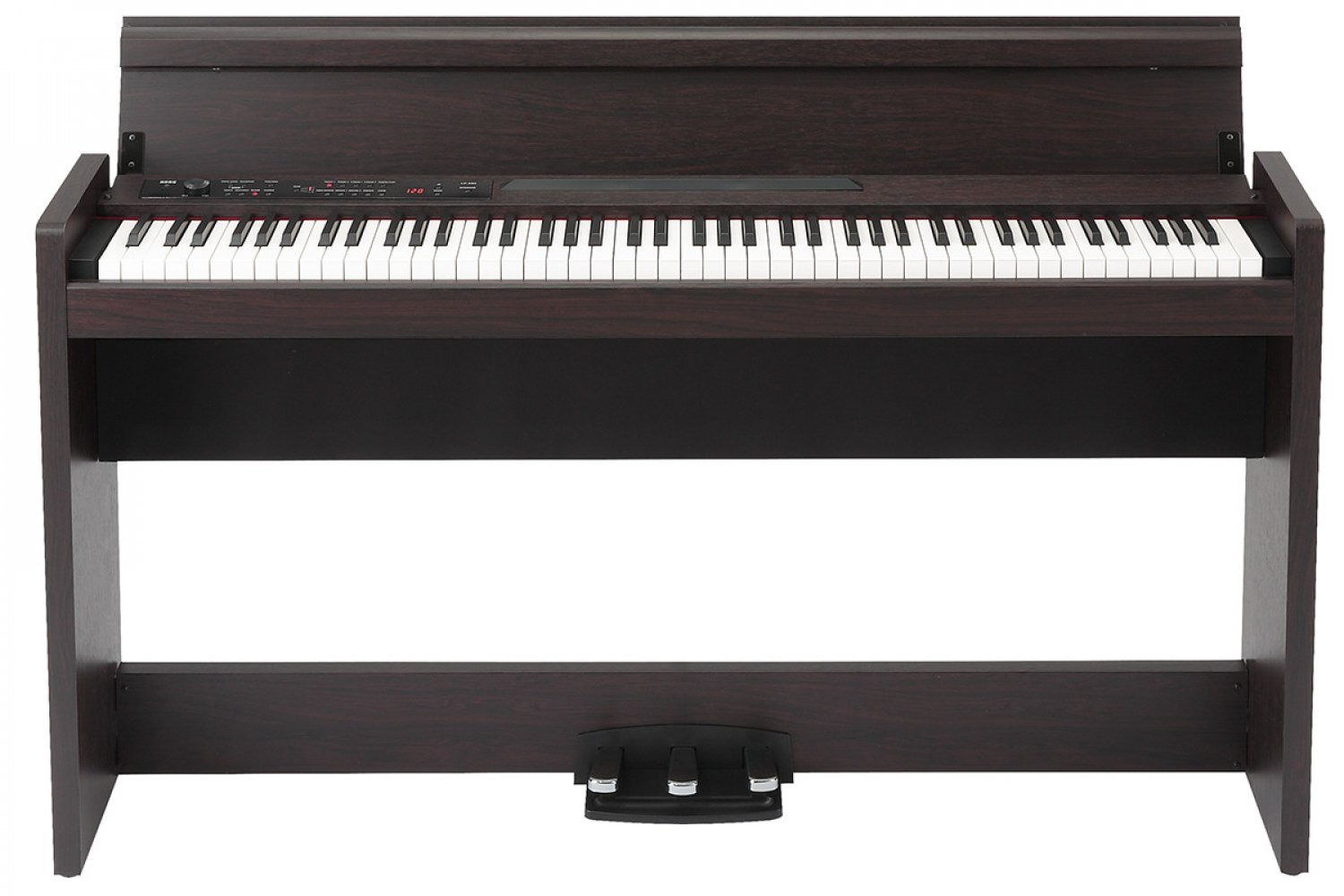Блок педалей: Цифровое фортепиано KORG LP-380-RW U , подобно концертного рояля, оборудованное тремя педалями, поддерживающих возможность выполнения с использованием техники полупедалирования для левой и правой педалей. Педали жестко закреплены на корпусе KORG LP-380-RW U и обеспечивают максимальную реалистичность ощущений при игре.