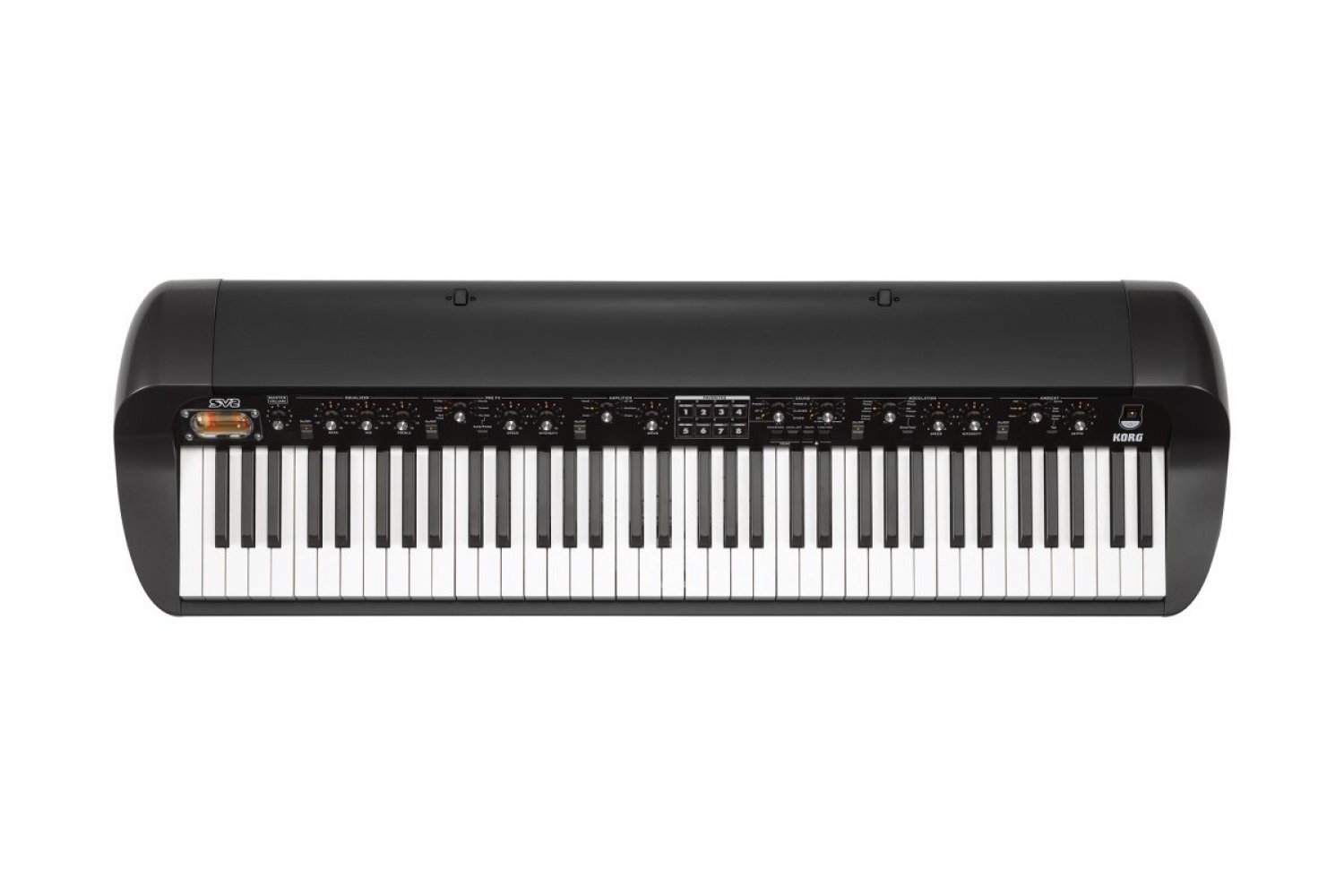Korg SV-2 73 - новое сценическое пианино серии Stage Vintage. Инструмент оснащен новейшей клавиатурой KORG RH3 с градуированной молоточковой механикой. Клавиатура имеет 73 полноразмерных чувствительных к Велосити клавиши, передают все нюансы исполнения. Предусмотрено 8 кривых Велосити и 8 схем настройки, включая равномерную и с различными завышенной. Инструмент предлагает 72 звука фортепиано, электропианино, органов, гитар, басов и синтезаторов, а также струнных, духовых и хоровых звуков. Представленные звуки инструментов лидирующих производителей гранд-пиано.