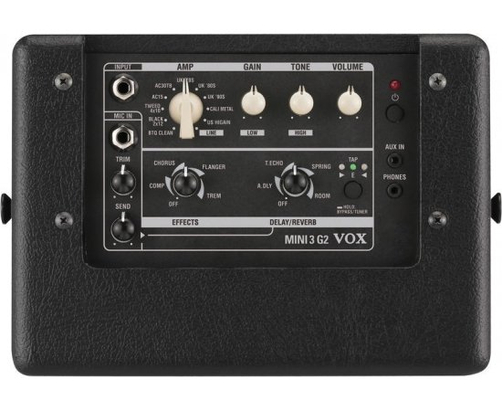 Гитарный комбоусилитель предлагает вниманию гитаристов звучание 11-ти типов самых известных гитарных усилителей и секцию эффектов обработки, которая включает в себя 8 эффектов + 4 типа эффектов реверберации и Дилей. Для коммутации электрогитары предусмотрены инструментальный гитарный и микрофонный вход, есть линейный вход для подключения CD / MP3-плеера, выход на наушники и встроенный тюнер для настройки гитары. В дополнение ко всему, гитарный комбоусилитель VOX MINI3-G2-CL оснащен оригинальной схеме «Bassilator», которая заметно улучшает общее качество звука комбоусилителя.