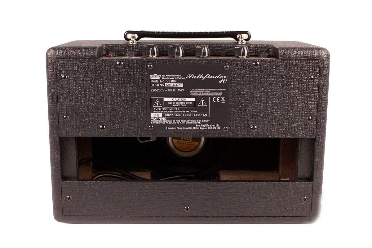 VOX PATHFINDER 10 оснащен динамиком VOX Bulldog диаметром 6.5 ", который, несмотря на свои скромные размеры, уверенно звучит во всем частотном диапазоне. Комбоусилитель имеет два канала: чистый и овердрайв, переключение между которыми выполняется кнопкой на панели управления. Звучание чистого канала имеет узнаваемую« Воксивську »теплоту, а перегружен - создает приятный умеренный овердрайв (не слабый, но и не экстремальный). Есть регулировка высоких и низких частот, общая громкость и управления чувствительностью входного каскада перегруженного канала. Регуляторы выглядят чрезвычайно олдскульная, сама фирма называет их« куриный клюв ». Для тихих занятий есть разъем, в который подключаются наушники.