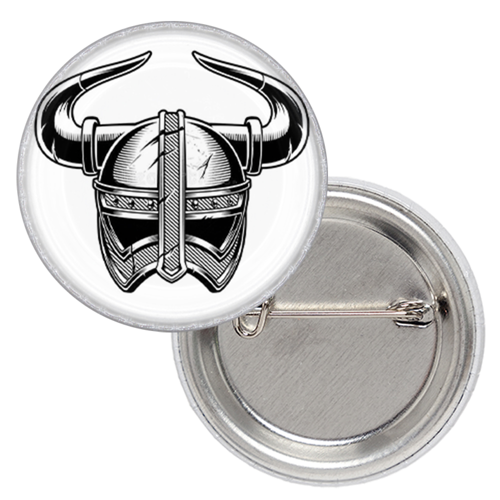 Значок Шлем с рогами (викинг) Материал: Металл. Диаметр: 25 мм. Значок закатной. Выполнен на металлической основе. Изображение покрыто специальной плотной пленкой, которая защищает его от повреждений, влаги, а также стирания. Округлая форма значка, метод изготовления, а также покрытие придают объем изображению на значке.
