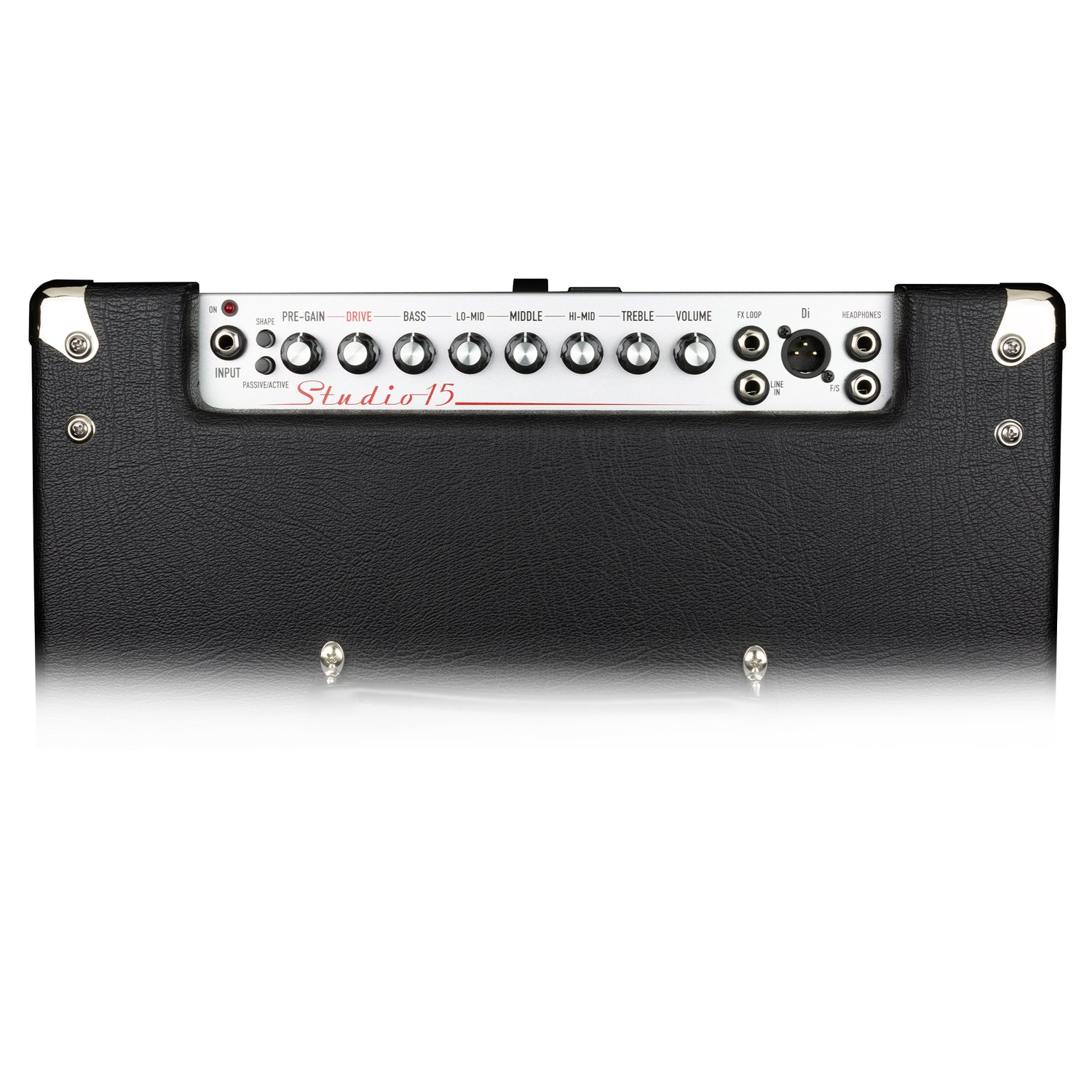 Неймовірно стильна Studio 15 видає 300 Вт чудового тембру Ashdown завдяки спеціально розробленому 15-дюймовому динаміку. Потужний, але портативний, Studio 15 має дивовижні функції, включаючи емулятор овердрайву лампи, 5-смуговий еквалайзер, вихід для навушників, лінійний вхід тощо.