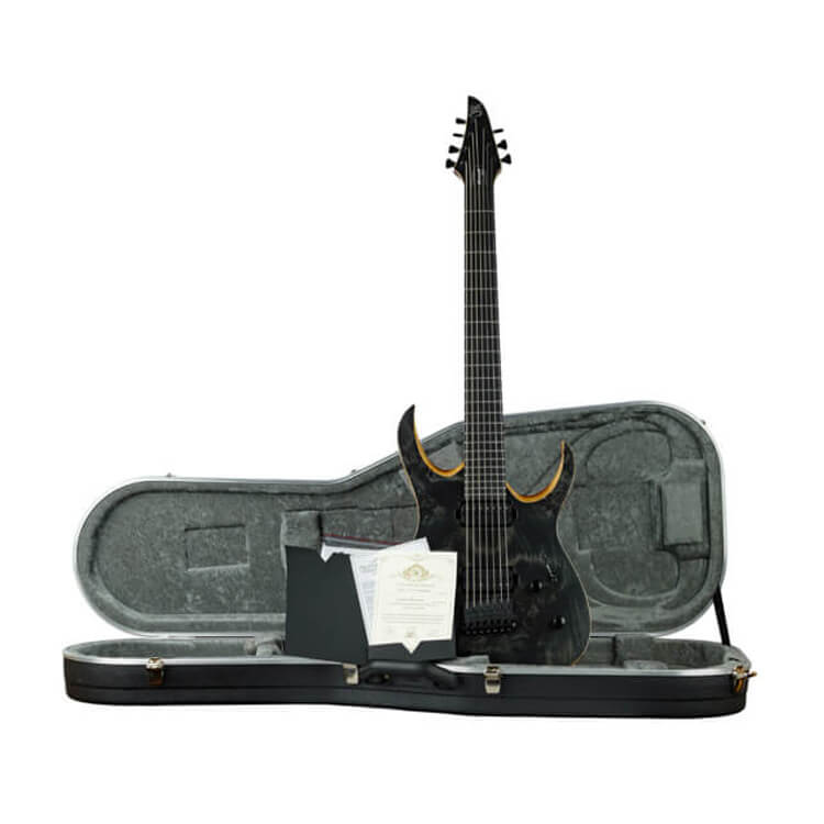 7-ми струнна електрогітара з корпусом із червоного дерева та топом з тополі 3А. Гриф гітари Mayones Duvell Elite 7 виготовляється з 5-ти частин клена та червоного дерева й має накладку з чорного дерева. Ідеальна гітара з яскравим звучанням.