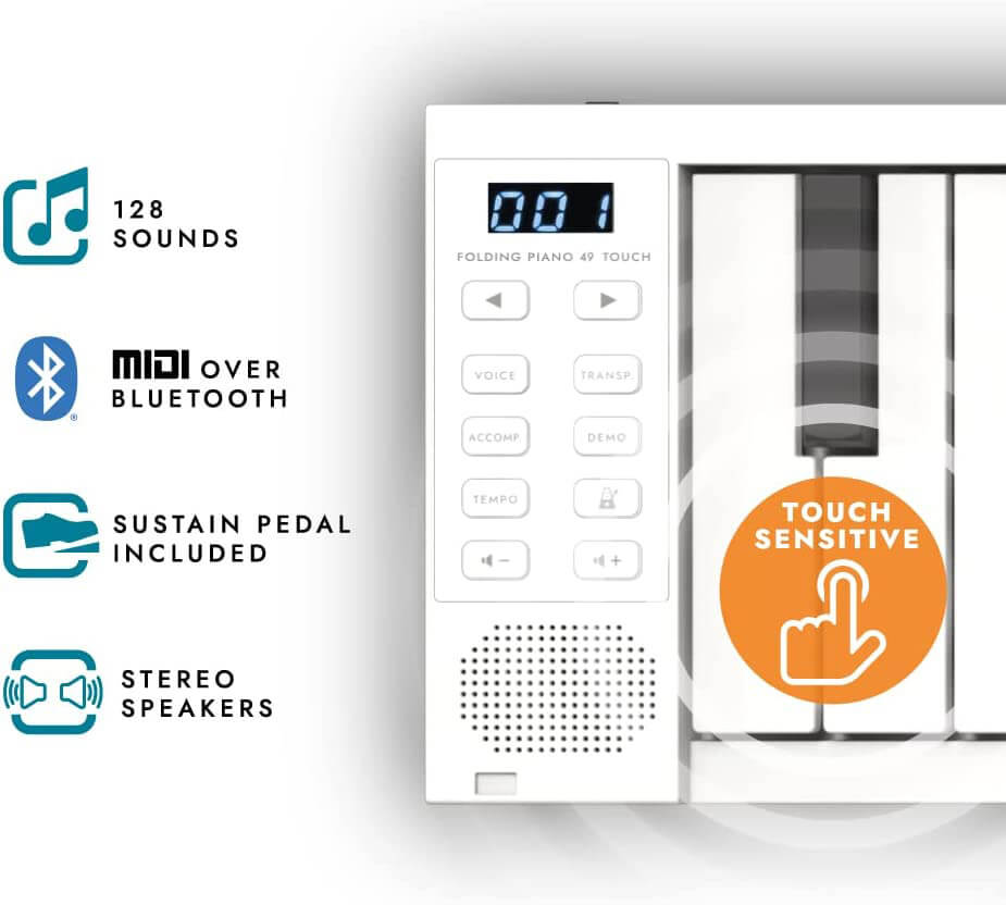 Touch - оновлена версія з динамічними клавішами. Розкладна клавіатура Blackstar Carry-On має 49 клавіш, 128 вбудованих тембрів, функцію автоакомпанементу та усе необхідне для гри будь-де і будь-коли.