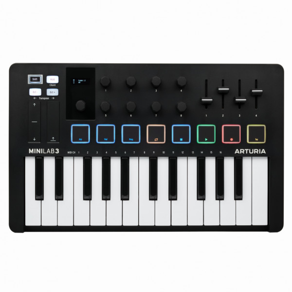 Від чудової клавіатури до інтелектуальних педів і фейдерів, інтегрованих в DAW, до міні-дисплея в реальному часі, кожен аспект MiniLab 3 спроектований так, щоб бути інтуїтивно зрозумілим, виразним і приносити задоволення - як новачкам, так і професіоналам.
