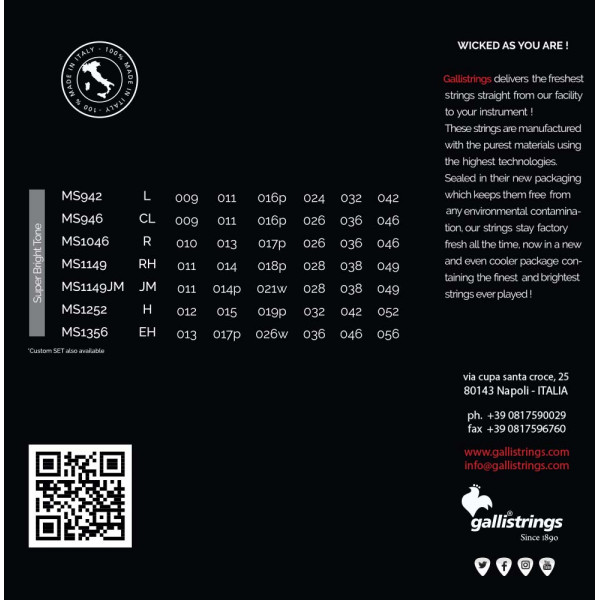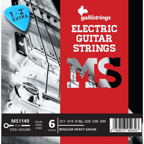 Gallistrings MS1149 REGULAR HEAVY – набір із 6 струн середньо-сильного натягу з круглою обмоткою, калібр .011 – .049.