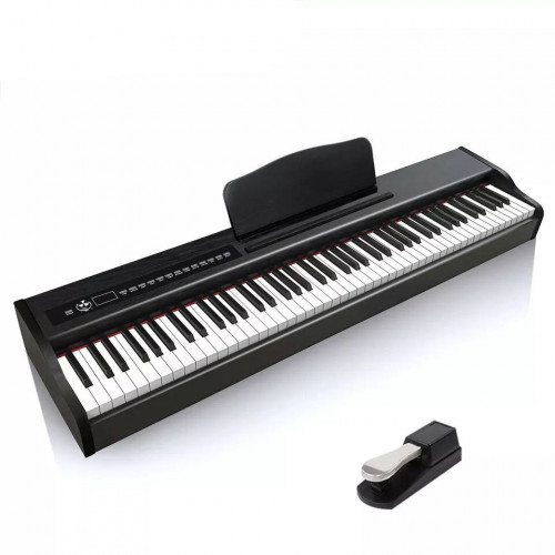 88-клавішне цифрове піаніно з молоточковою механікою і вбудованим 15-ватним динаміком. Animato має активну клавіатуру, яка чутлива до сили натискання (16 рівнів). Чим сильніше буде натиснута кнопка, тим сильнішим вийде звук. Вага клавіатури важча на низьких нотах і легша на високих, тому відтворення змінюється поступово в залежності від діапазону звуку, даючи Вам відчуття від гри, як на звичайному піаніно. Новітня технологія чіпа France Dream5 Series (5504) забезпечує високу якість звуку за найнижчою ціною, даючи можливість отримати чудовий досвід від гри. У комплект входить: блок живлення, гарантійний талон, сертифікат якості, інструкція користувача і педаль Sustain, яка підключається через відповідний роз'єм. Так само є роз'єми USB, аудіо та для підключення навушників. Для зручності передбачено місце для розміщення нотних зошитів. Піаніно виконано в чорному кольорі.