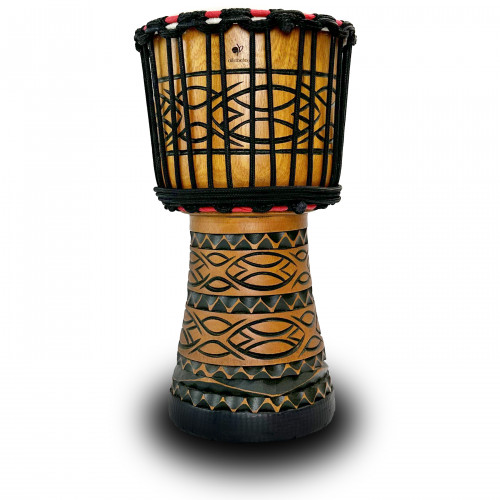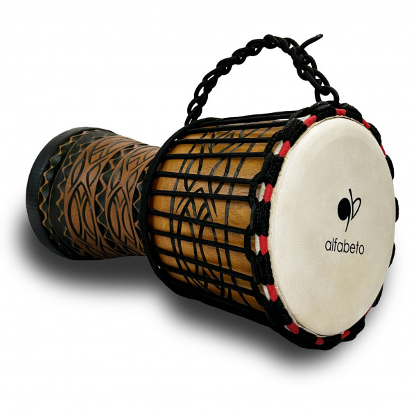 Корпус джембе прикрашений африканськими орнаментами, вирізьбленими на корпусі джембе з натурального дерева. Ці орнаменти додають інструменту особливого колориту і додають йому аутентичності. Вони витончено відображають дух африканської культури та традицій, роблячи джембе Alfabeto DJW8 не лише музичним інструментом, але й шедевром декоративного мистецтва.