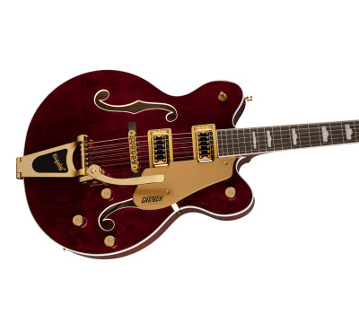 Сліпуча напівакустична гітара Gretsch G5420T Electromatic Classic Hollow Body Double Cut Lrl оповнена золотим пікгардом із золотою фурнітурою.