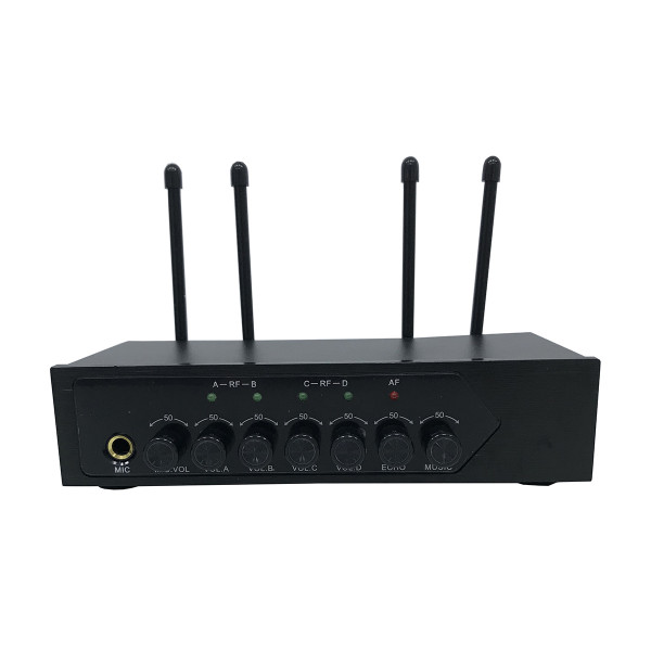 Крім того, система має два бездротових мікрофони та два петличних мікрофони, що дозволяє змінювати конфігурацію залежно від потреби. Вбудована технологія шумозаглушення дозволяє зменшити зовнішній шум та забезпечити чіткий звук.