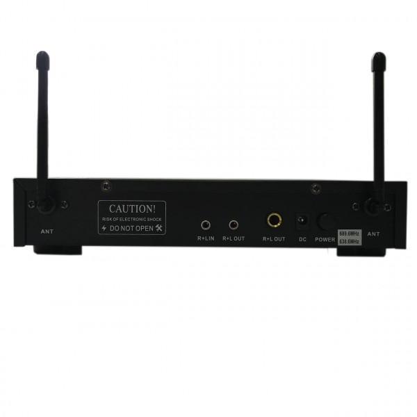 - Помістіть хост (приймач) поруч із робочим столом або мультимедійними динаміками, підключіть шнур живлення. І використовуйте аудіокабель, наданий виробником, для підключення R+L OUT на одному кінці та MIC IN настільного комп'ютера або R+L IN мультимедійних динаміків на іншому кінці. При включенні живлення хоста (приймача) засвітиться індикатор живлення, і машина перейде в режим очікування.