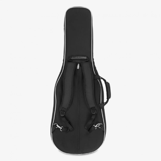 Цей чохол оснащений м'якою підкладкою, посиленим ударопоглинальним наповнювачем, регульованою подушкою для грифа гітари, двома зовнішніми кишенями для зберігання, складними лямками, посиленою ручкою із застібкою на липучці та ручкою для перенесення за шию.