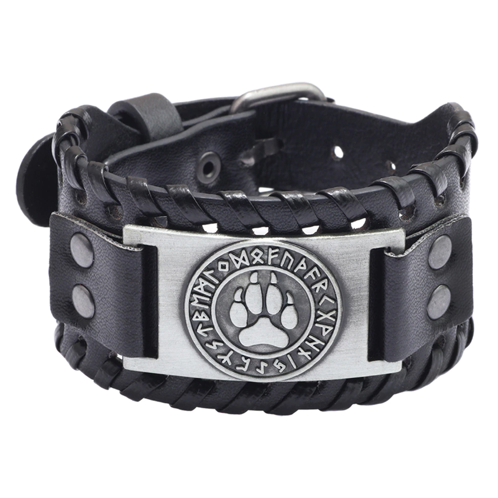 Браслет із металевою вставкою Лапа вовка в рунічному колі (bpm-002)