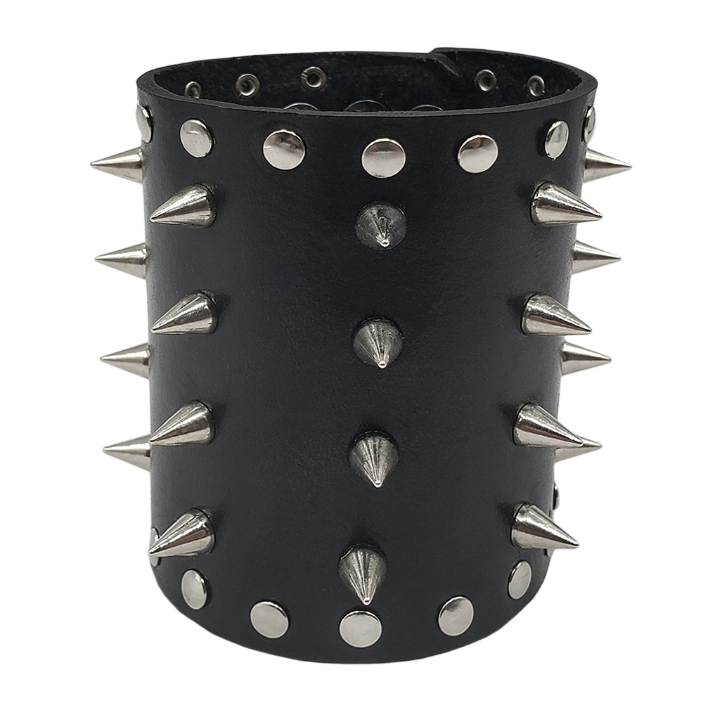 Браслет шкіряний з 4 рядами шипів, широкий на кнопках (bsl-007)