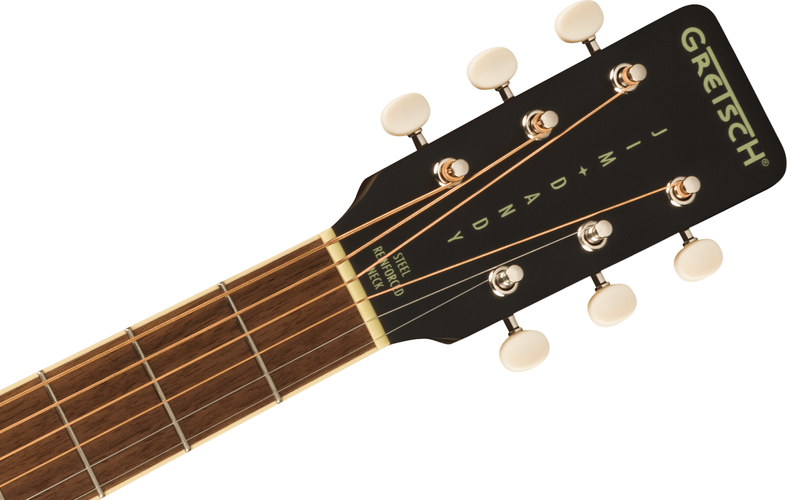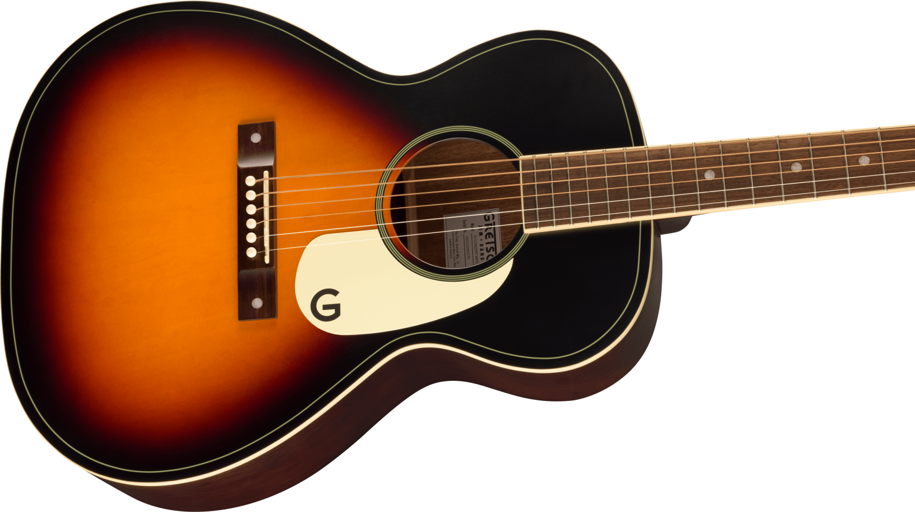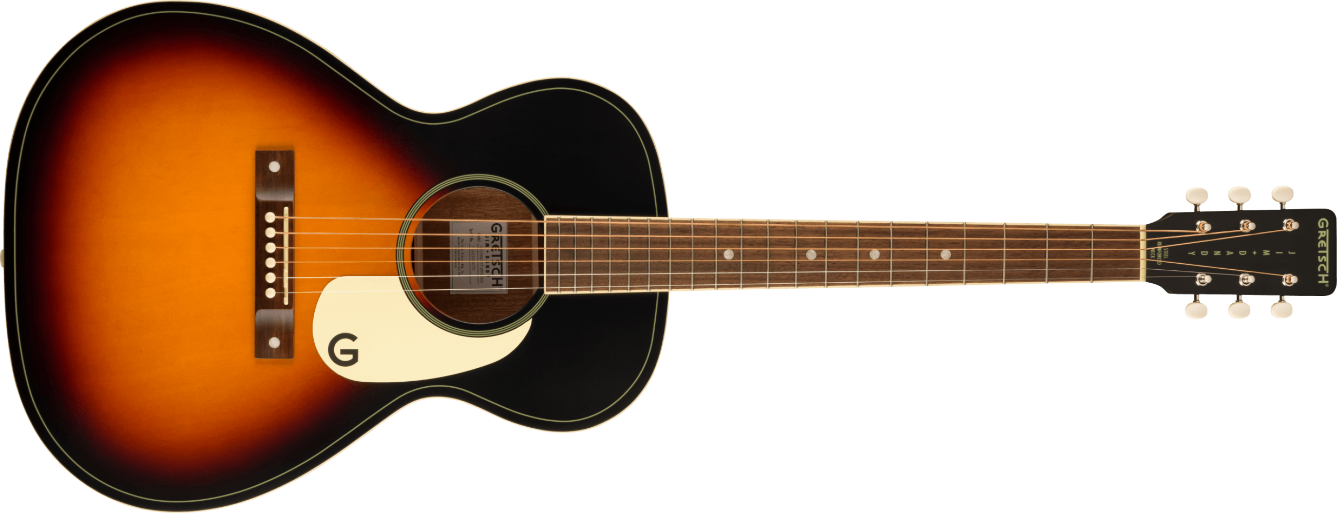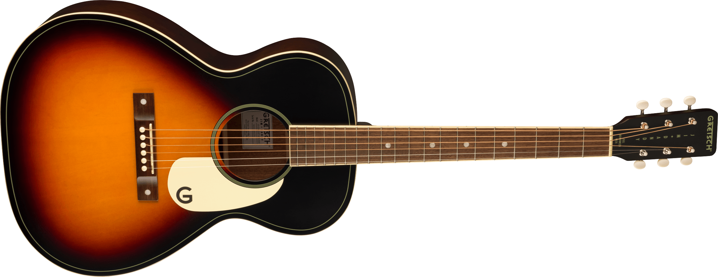 Gretsch Jim Dandy Concert Rex Burst – акустична гітара, серії Jim Dandy, корпус – Concert, верхня дека – ламінована липа, нижня дека і обичайки – ламінована липа, гриф – нато з накладкою горіх, профіль грифа – "C" Shape, радіус – 12", лади – 18 Vintage, мензура 24.75", колір – санберст.