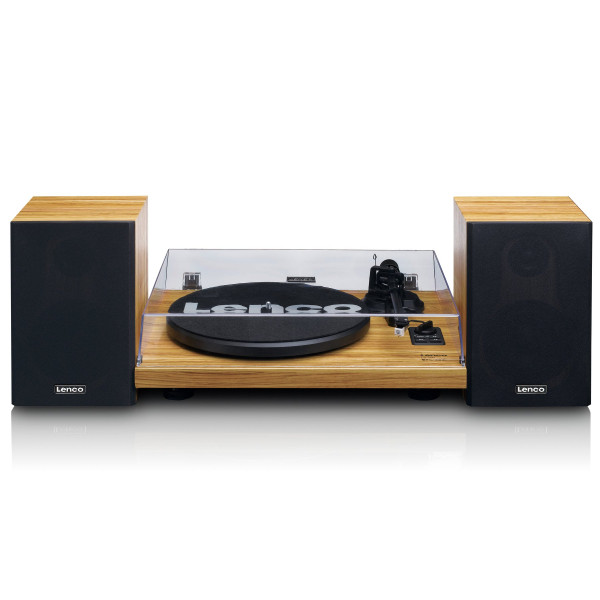 Сучасний програвач вінілових пластинок Lenco LS-500 має дві дерев'яні колонки, які можна розмістити окремо від програвача, що ідеально підходить для створення справжнього стереоефекту. Ви можете легко змінити швидкість обертання з 33 на 45 обертів за хвилину для відтворення більш старих платівок (адаптер йде в комплекті). Оскільки платівки рухаються ременем, відсутні небажані вібрації, які можуть порушити звуковий сигнал. Панель керування має 4 кнопки і регулятор гучності, також є світлодіодний індикатор. Ви можете легко передавати музику зі свого смартфона або іншого пристрою завдяки функції Bluetooth (версії 4.2). Lenco LS-500 поставляється з пластиковою кришкою, яка захищає програвач Lenco від пилу та бруду протягом тих коротких періодів, коли Ви не користуєтесь програвачем.