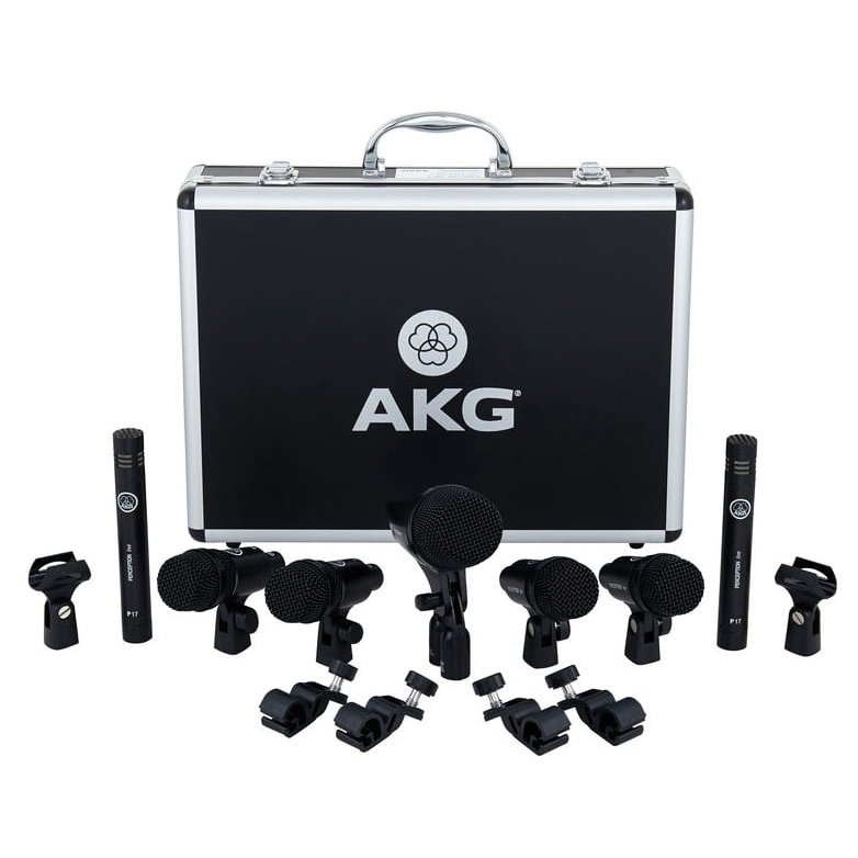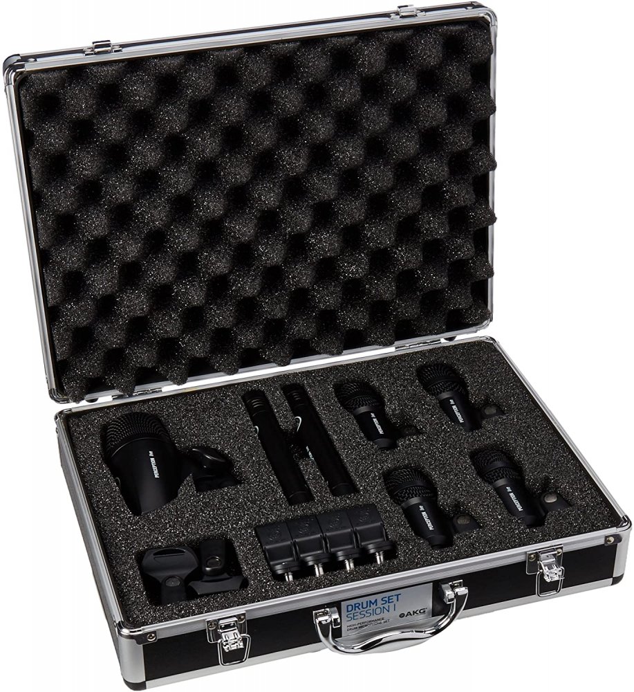 AKG DRUMSET SESSION 1 - це комплект мікрофонів для запису ударних установок, гітарних і бас-гітарних підсилювачів, перкусії, духових інструментів і багато чого іншого. Цей комплект ідеальний для звукорежисерів-початківців і барабанщиків. Це 7 мікрофонів і аксесуарів до них, упаковані в міцний алюмінієвий кейс. Всі мікрофони належать до серії Perception Live і характеризуються наявністю міцного металевого корпусу, надійної сталевої решітки для захисту мікрофона, стійким до подряпин покриттям і високим показником максимального рівня звукового тиску.
