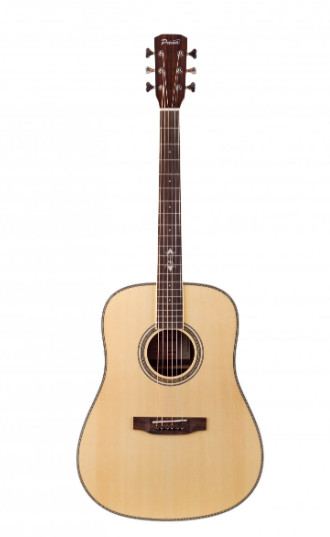 Prima MAG205Q – акустична гітара глибокої форми Dreadnought з палісандровим корпусом та ялиновим топом. Кремові облямівки по довжині грифа, облямування з детальним візерунком, що оперізують корпус та отвір резонатора. Мінімалістична, витончена інкрустація на накладці грифа, стильно зрізані кути голови грифа та незвична форма кілків - гітара просто створена для того, щоб приносити власникові естетичне задоволення.