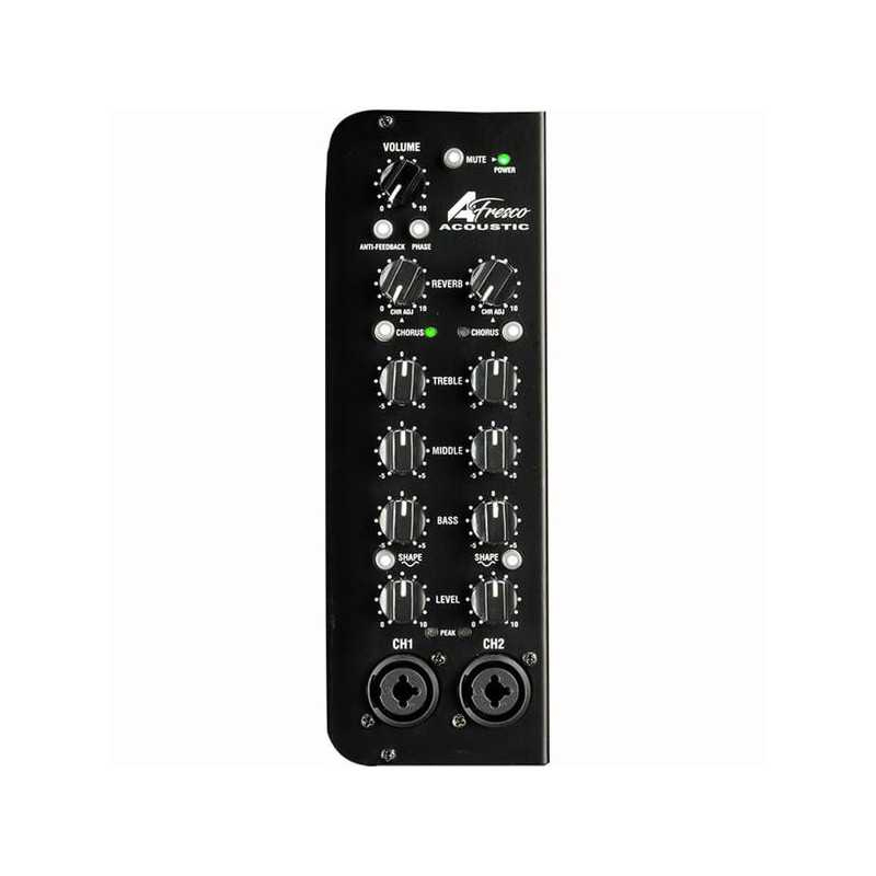 A-FRESCO-2 має два повністю незалежні канали, кожен з яких може підключатися через XLR, або Jack. Кожен канал має трисмуговий еквалайзер і має функцію Shape для миттєвої оптимізації однією кнопкою. Ця гнучкість дозволяє підключати мікрофон та інструмент, два різні акустичні інструменти. Крім того, з додатковим Aux входом для підключення плеєра A-FRESCO-2 ідеально підходить для живих виступів. Обидва канали також мають свій власний Chorus та/або Reverb для подальшого покращення звуку без необхідності використання зовнішніх ефектів.