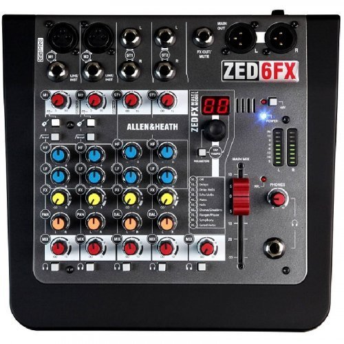 Компактний аналоговий мікшер Allen & Heath ZED6 FX з 6-ма входами. Створено для гастролюючих музикантів і співаків, є універсальним компаньйоном для кожного етапу творчого шляху. Завдяки новій конструкції підсилювача GSPre, створеної професіоналом світового рівня Майком Гриффином, за аналогією з популярною студійної консоллю GS-R24, Allen & Heath ZED6 FX володіє виключно низьким рівнем шуму, масивним запасом, з сигнатурою аналогової теплоти і глибини.