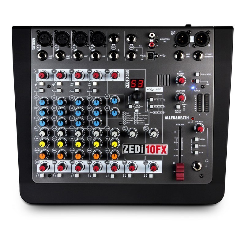 Призначений для запису, живих виступів і інсталяції, Allen & Heath ZEDi-10FX поєднує в собі компактний мікшерний пульт з USB-інтерфейсом 4х4 (24 біт, 96 кГц). Завдяки цьому він забезпечує мультитрековий запис і відтворення на Mac, PC і девайси iOS (при цьому застосовується Camera Connection Kit).