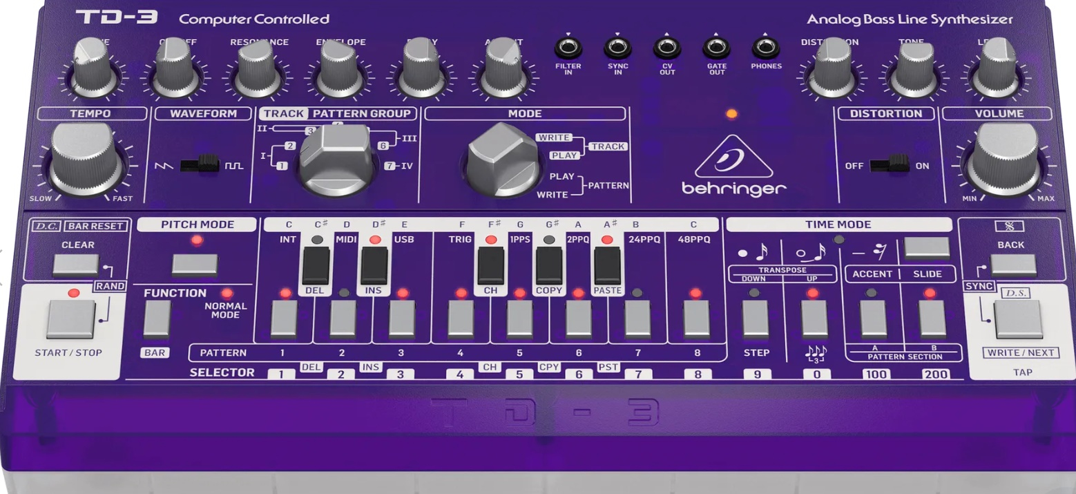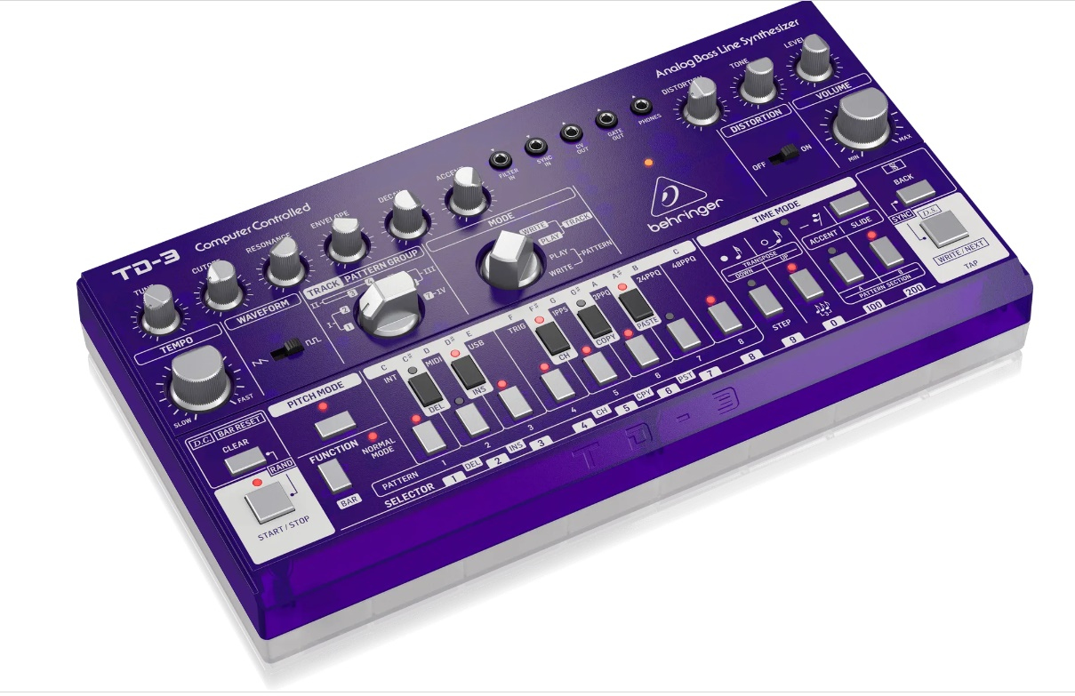 Behringer TD-3-GP - аналоговий басовий синтезатор і секвенсор, що відтворює пульсуючі ритми і сильні басові звуки, які визначають електро-фанк, acid, техно і хаус протягом останніх 30 з гаком років.