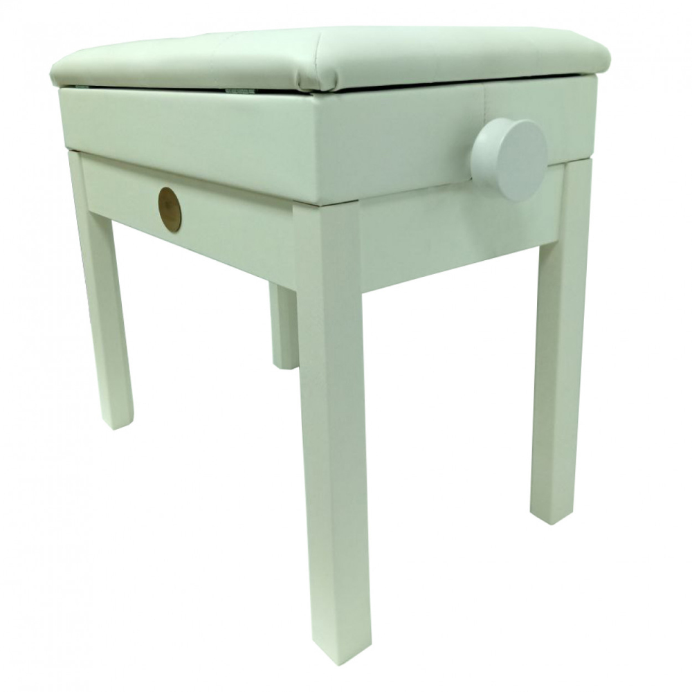 Банкетка підійде для клавішних інструментів таких, як фортепіано, рояль, орган або синтезатор. Обладнана спеціальним відділенням, для зберігання нот та інших необхідних для Вас речей, прямо під сидінням. Буде дуже зручною для музикантів завдяки регулюванню висоти за допомогою спеціальної ручки. Ніжки банкетки мають пряму форму та зроблені з дерева. Знизу на ніжки нанесено спеціальне захисне покриття, для перешкоджання пошкодження підлоги. Сидіння банкетки виготовлено з якісної натуральної шкіри. Сидіння наповнене поролоном товщиною не менше 30 мм. Для надання стійкості, модель оздоблена металевими петлями.