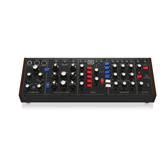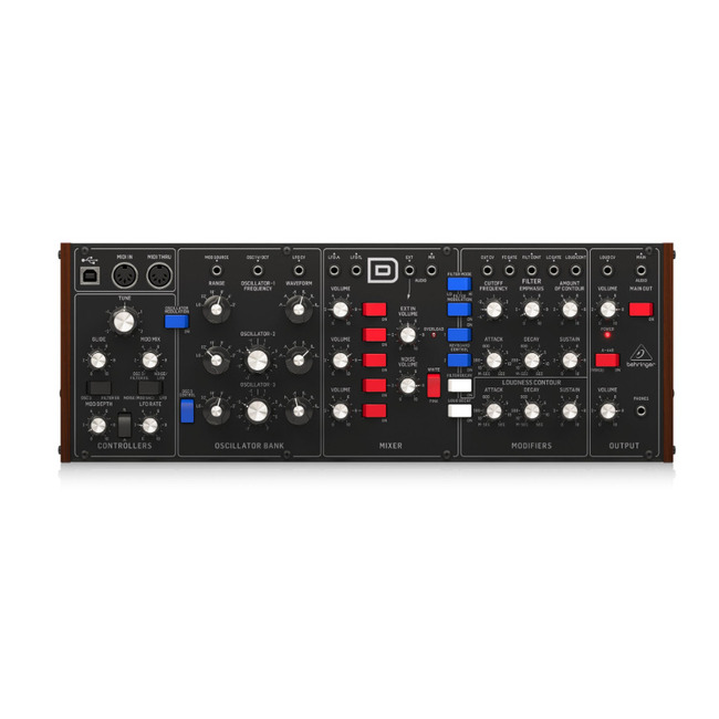 Якщо говорити простою мовою, то Behringer D виглядає отпадно! Дерев'яні торцеві панелі, Eurorack розмір, який дуже зручно тримати також і в руках, ручки з фіксованими значеннями і перемикачі, все це дуже доставляє при використанні. Три осцилятора, керовані напругою, встановлюють приголомшливу звукову вогневу міць, в той час як класичний набір управління забезпечує величезну кількість налаштувань в режимі реального часу. Існує також зв'язок з CV для полумодальной гнучкості і взаємодії із застарілим обладнанням. Behringer зібрав все необхідне (а трохи більше) в цю маленьку перлину синтезу. З Behringer Model D так і хочеться взяти і почати створювати музику!