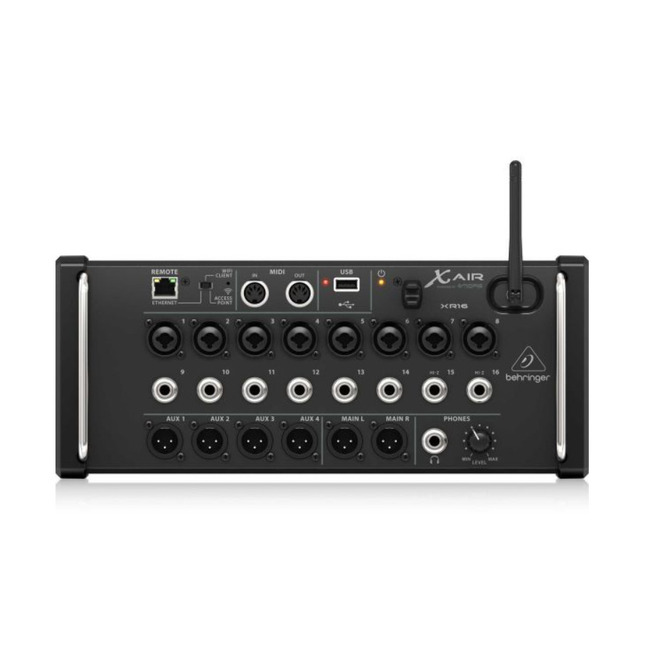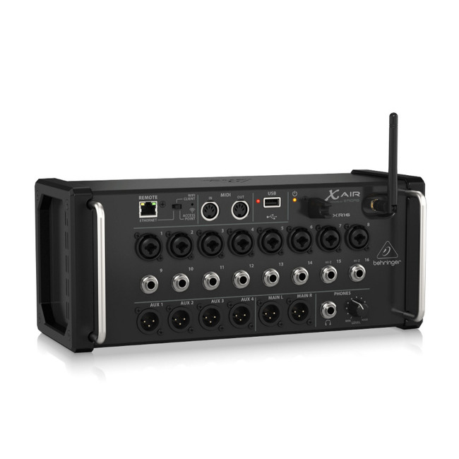 Behringer X AIR XR16 – рековий цифровий пульт мікшера з наявністю 16 входів, 4 Аux виходів, 8 фірмових преампів Midas і можливістю віддаленого керування за допомогою пристроїв iPad/iPhone. Мікшер підходить для роботи на концертах із живим звуком, а також для студійної роботи.