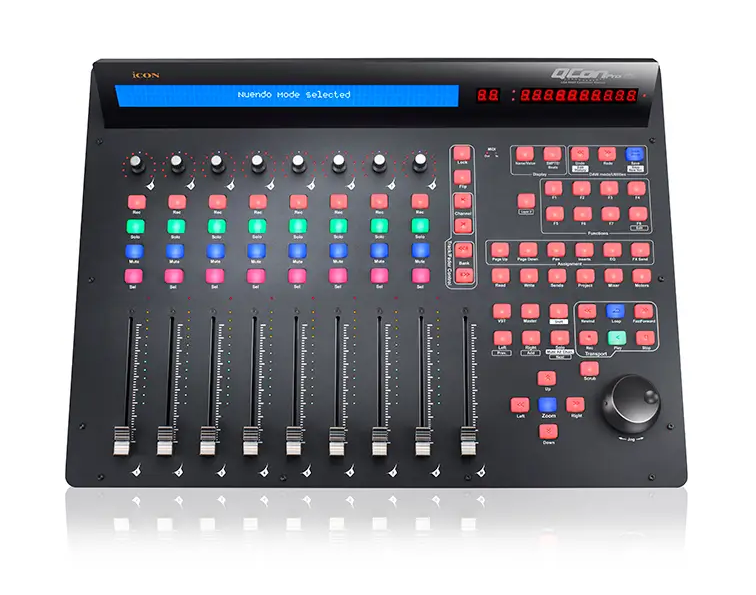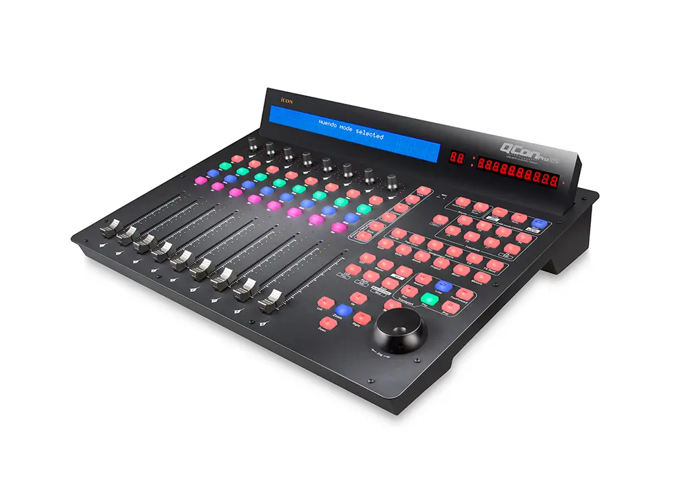 Icon Pro Audio QCon Pro G2 – це восьмиканальна універсальна панель управління з Mackie Control та емуляцією HUI для підтримки більшості основних DAW. Незалежно від того, чи відстежуєте ви чи мікшуєте, QCon Pro G2 забезпечує інтуїтивно зрозумілий тактильний контроль над вашим сеансом. Встановлюйте рівні, точно налаштовуйте еквалайзери та ефекти, автоматизуйте запис, вставляйте та завершуйте записи – і все це на кінчиках ваших пальців. QCon Pro G2 оснащений дев'ятьма моторизованими фейдерами, вісьма універсальними натискними енкодерами, 78 кнопками, коліщатком поворотного перемикача та 2 роз'ємами для ножних педалей. Для кожного каналу передбачені 12-сегментні світлодіодні індикатори рівня, а на великому РК-екрані з підсвічуванням відображаються назви каналів та значення параметрів. Також передбачено 12-сегментний світлодіодний дисплей для тактової частоти SMPTE або MIDI.