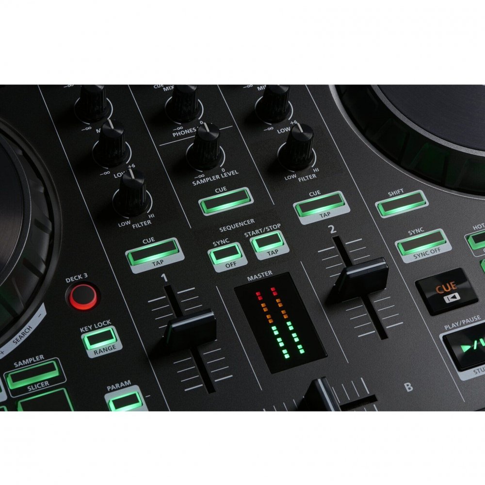 ROLAND DJ202 - контролер для управління диджейской програмою Serato DJ Intro, що надає діджею функції повнорозмірного професійного контролера в форматі портативного пристрою. Компактний контролер ROLAND DJ202 виконаний в стилі старшого контролера цієї серії DJ-808 і модернізованого DJ-505, забезпечуючи безпрецедентну свободу діджеїнгу, ремікшування і створення ритмічних фраз на льоту як в живій роботі, так і в студії. Roland DJ-202, обладнаний великими безінерційними Джога, спеціалізованими педами, регуляторами управління транспортом, вбудованим секвенсером і мікрофонним входом з вокальними ефектами професійного рівня реалізує більше функцій, ніж будь-який інший контролер цього ж класу.