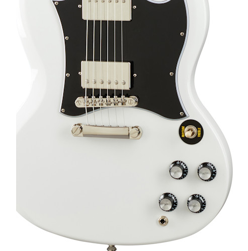 Електрогітара EPIPHONE SG STANDARD ALPINE WHITE, оснащена високоякісною електронікою та фурнітурою, створена для виступів. Два хамбакери Alnico Classic PRO максимально використовують свої магніти Alnico5 з поліпшеними середніми та високими частотами для створення справжнього «гарчання» рок-н-ролу, мерехтливих чистих тонів або теплих джазових звуків. Струнотримач Stopbar, бридж LockTone ABR Tune-O-Matic та кілки Grover Rotomatic забезпечують чудову стабільність настройки, а електроніка CTS преміум-класу підкреслює видатний характер цієї культової електрогітари.