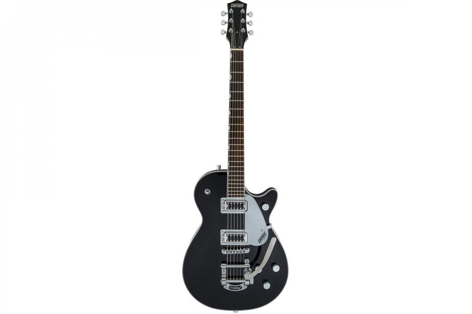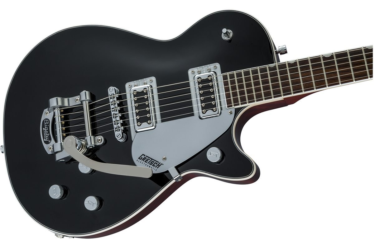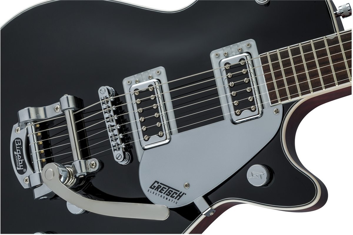 GRETSCH G5230T ELECTROMATIC JET FT SINGLE-CUT WITH BIGSBY BLACK обладнана найважливішими елементами, які дають вам повний тональний контроль. Комбінація індивідуальних регуляторів гучності звукознімачів, майстра-тону і майстра-гучності зі схемою Treble Bleed забезпечує інтуїтивний глобальний контроль над налаштуваннями ваших звукознімачів і тону.