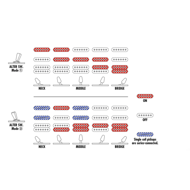 Система перемикання Dyna-MIX 9 з мініперемикачем Alter пропонує дев'ять варіантів звучання, включаючи режими хамбакера, синглу та комбінований звук, що імітує хамбакер із двох синглів. Звукознімачі Seymour Duncan Hyperion з магнітами Alnico-5 дають помірний вихідний сигнал, зберігають чистоту основного тону при дисторшині і забезпечують рівномірний тональний баланс по всьому діапазону.