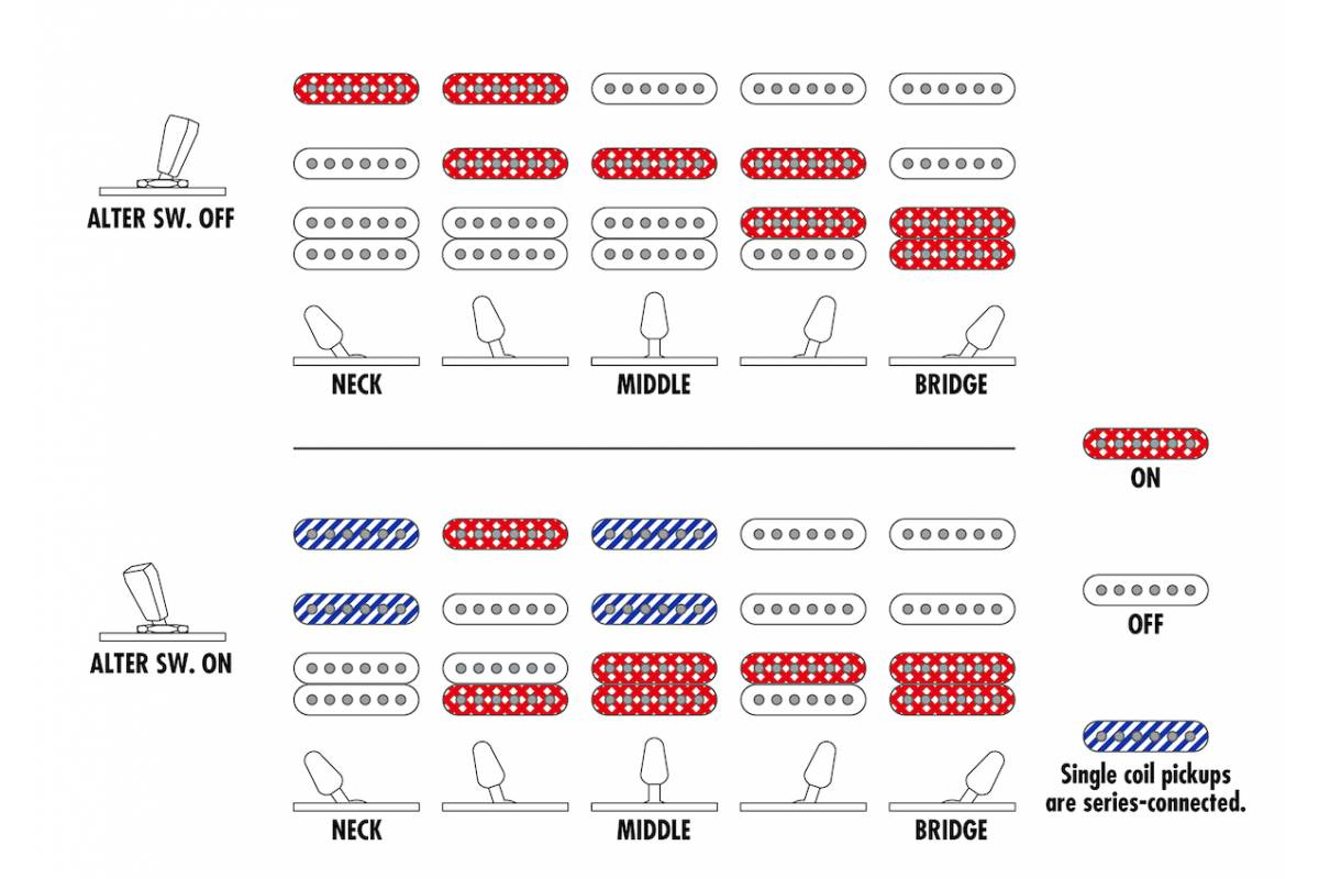 Звукознімачі Essentials та Accord забезпечують добре збалансоване звучання й універсальність, тож гітаристи можуть насолоджуватися різноманітними стилями музики за допомогою всього лише одного інструменту. Система перемикачів dyna-MIX 9 з перемикачем Alter надає дев'ять варіацій звуку та може легко перемикатися між режимами хамбакера та синглу за допомогою міні-перемикача. Один режим здатний навіть імітувати хамбакер з конфігурації двох синглів.