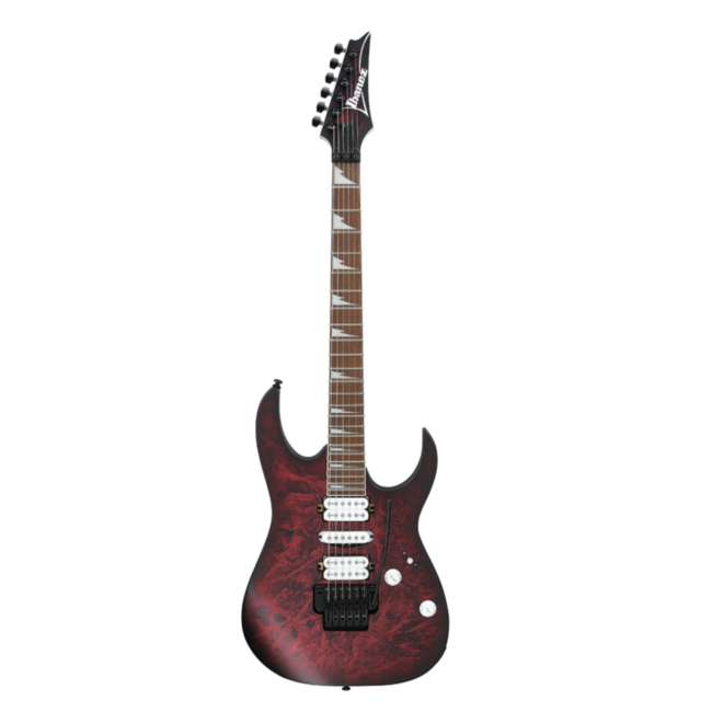 Ibanez RG470DXW-WZM – електрогітара 6 струн серії RG Standard, дека – меранті, гриф – кленз накладкою ятоба, профіль грифа Wizard III, лади 24 Jumbo, мензура 25.5", звукознімачі (H-S-H) – Quantum, бридж-тремоло Edge-Zero II, колір – червоний матовий.