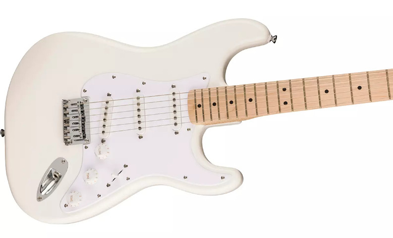Основні особливості електрогітари Squier by Fender Sonic Stratocaster HT MN Arctic White: Тонкий і легкий корпус з тополі; "С"-подібний гриф з клену; Три синглові звукознімачі Ceramic Single-Coil; 6-сідельний жорсткий бридж (HT); Хромована фурнітура; Колір – білий.