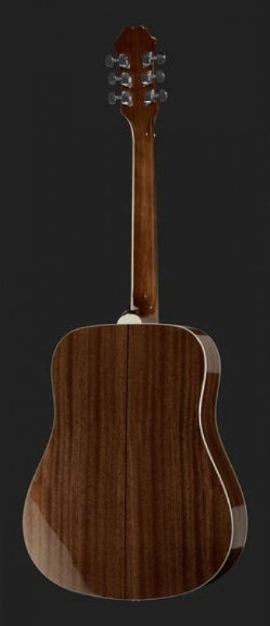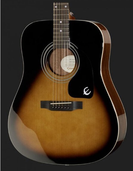 EPIPHONE DR-100 VSB складається з традиційних для такої форми матеріалів: корпус із махагоні з верхньою декою з ялини, що дає збалансований і правильний звук, багатий на натуральні низькі частоти з підкресленою верхньою серединою. Гриф також зроблений із махагоні з накладкою з палісандра. Вибираючи EPIPHONE DR-100 VSB ви отримуєте повноцінний дредноут з усіма плюсами, які може забезпечити така форма деки, і фірмовими обертонами!