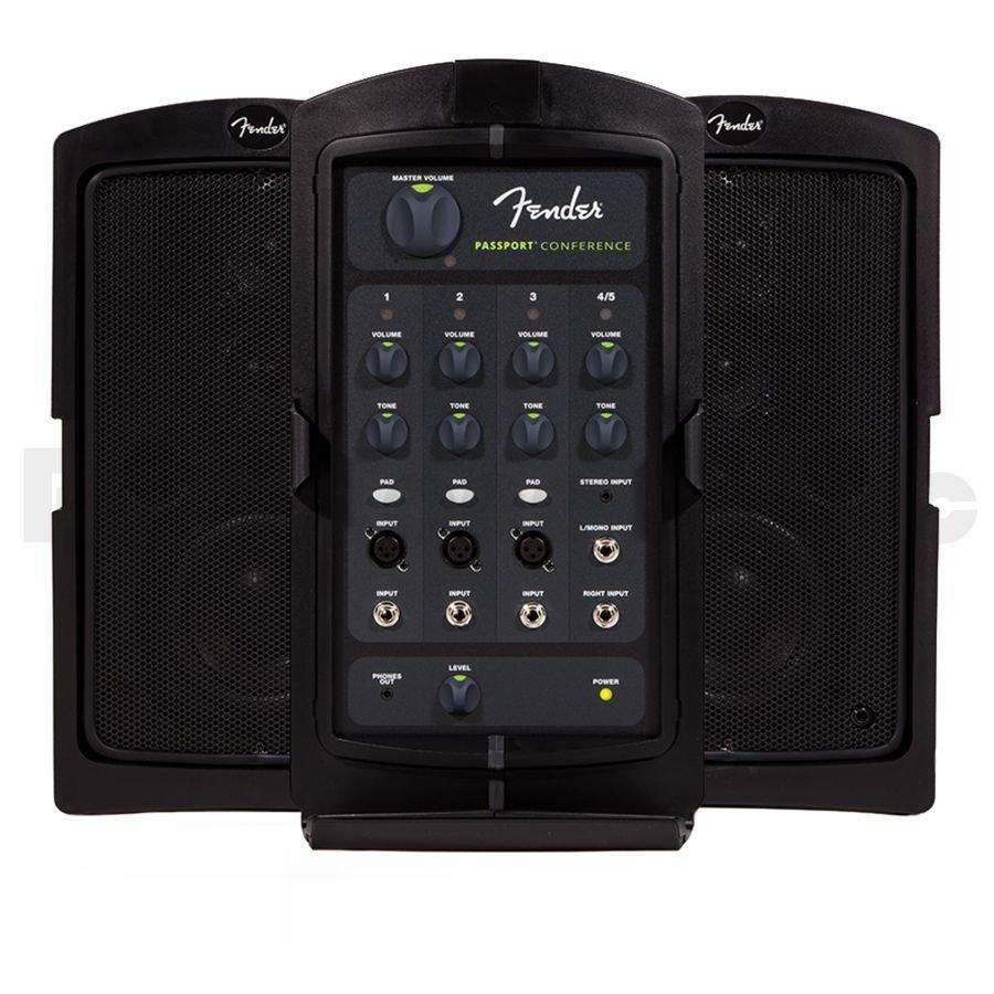 FENDER Passport CONFERENCE - готовий активний звуковий комплект, загальна потужність 175 Вт, 2 колонки, мікшерний пульт на 5 каналів, зручна складна конструкція для перенесення.