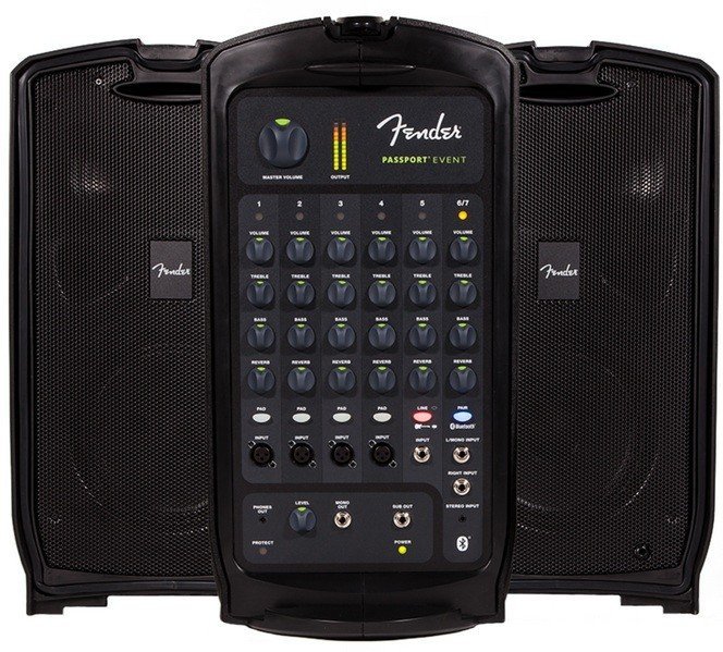 Комплект звукопідсилюючого обладнання FENDER PASSPORT EVENT є однією з кращих портативних, автономних систем, які включають в себе все, що тільки може знадобитися для озвучення невеликих заходів. Акустичний комплект надзвичайно простий в експлуатації, має компактні розміри і достатню потужність для озвучення невеликих приміщень і відкритих майданчиків. У комплект системи звукопідсилення FENDER PASSPORT EVENT, який в зібраному стані виглядає як велика валіза, входить все, що тільки необхідно для озвучення різноманітних заходів.