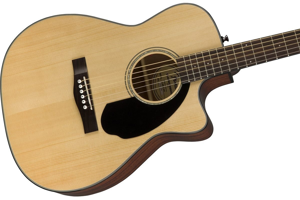 FENDER CC-60SCE WN NAT - електроакустична гітара в компактному корпусі від знаменитого американського виробника, що оснащена високоякісною електронікою. Це ідеальний інструмент початкового/середнього рівня для молодих музикантів і тих, навчається грі на гітарі, готових спробувати себе в електриці. Корпус моделі забезпечує комфорт при грі в будь-якій позиції. Виріз ергономічної форми дає зручний доступ до верхніх ладів.