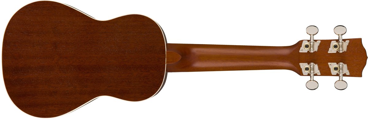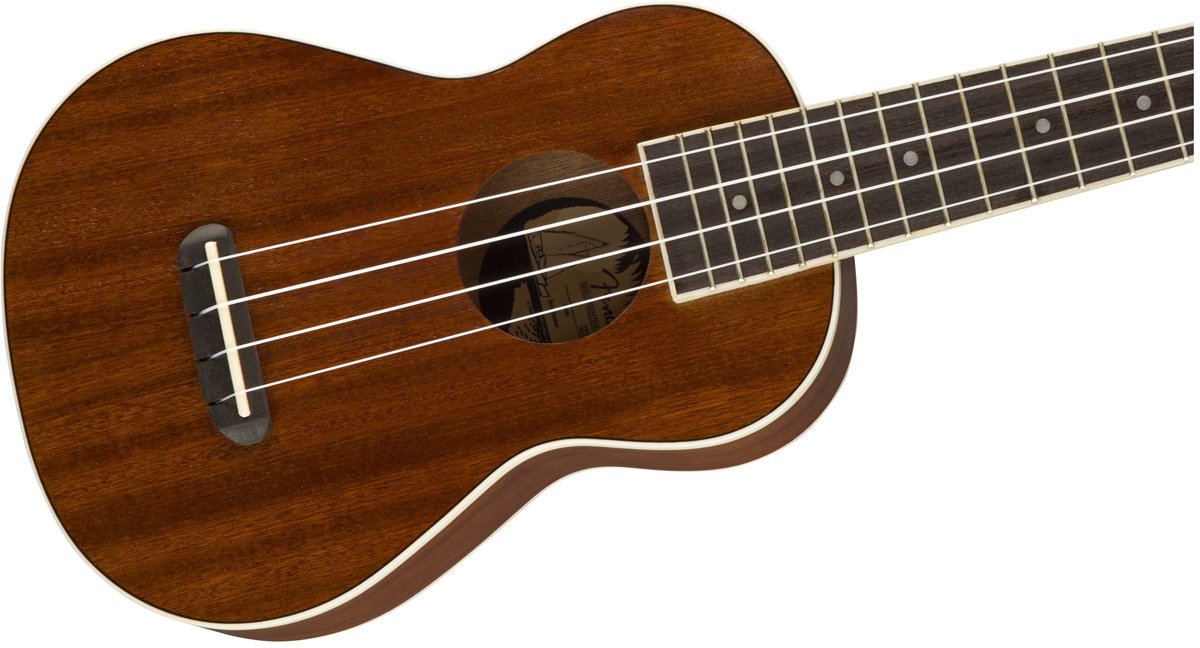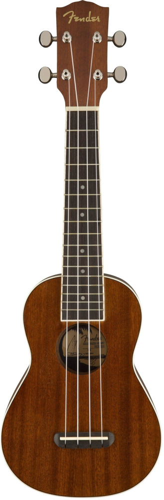 Fender Ukulele Seaside Soprano Natural - укулеле в корпусі розміру сопрано від знаменитого американського гітарного бренду Fender. Корпус укулеле зроблений з ламінованого махагони, він компактний, зручний при грі, таку гавайську гітару легко брати з собою в поїздки і подорожі. Верхня дека також виконана з ламінованого червоного дерева, без пікгард.