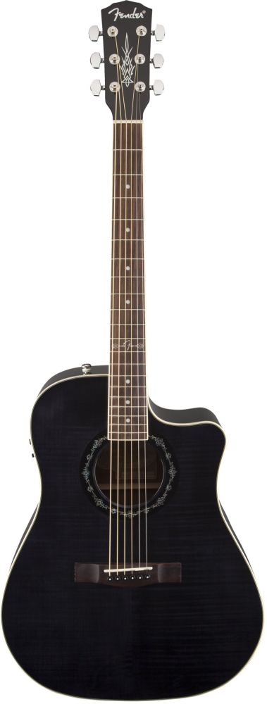 Верхня дека - вогненний клен, обичайка і задня дека - червоне дерево, преамп Fishman, колір чорний.