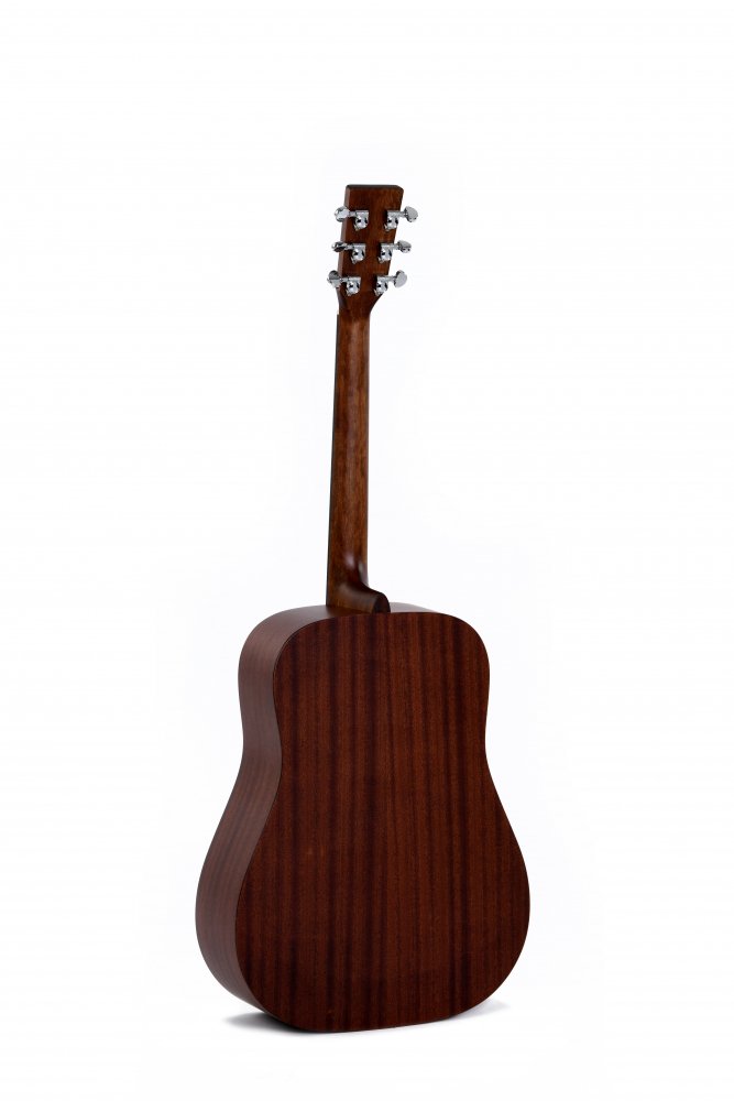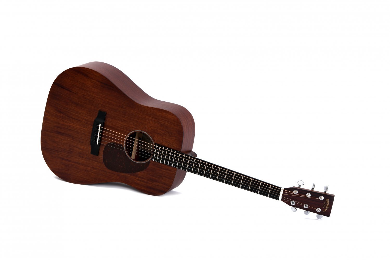 Верхня дека виготовлена з цільної деревини махогані. Така деревина придає м'яке звучання з рівною динамікою, а також, кожна струна звучить виразно. Тому, інструмент чудово підійде для гри пальцями. Глибокий корпус дредноут з червоного дерева придає звуку об'єму, підкреслюючи нижню середину, а також, звучання має м'які високі частоти. Поєднання верхньої деки та корпуса з червоного дерева створюють широкий динамічний діапазон та теплий тембр.