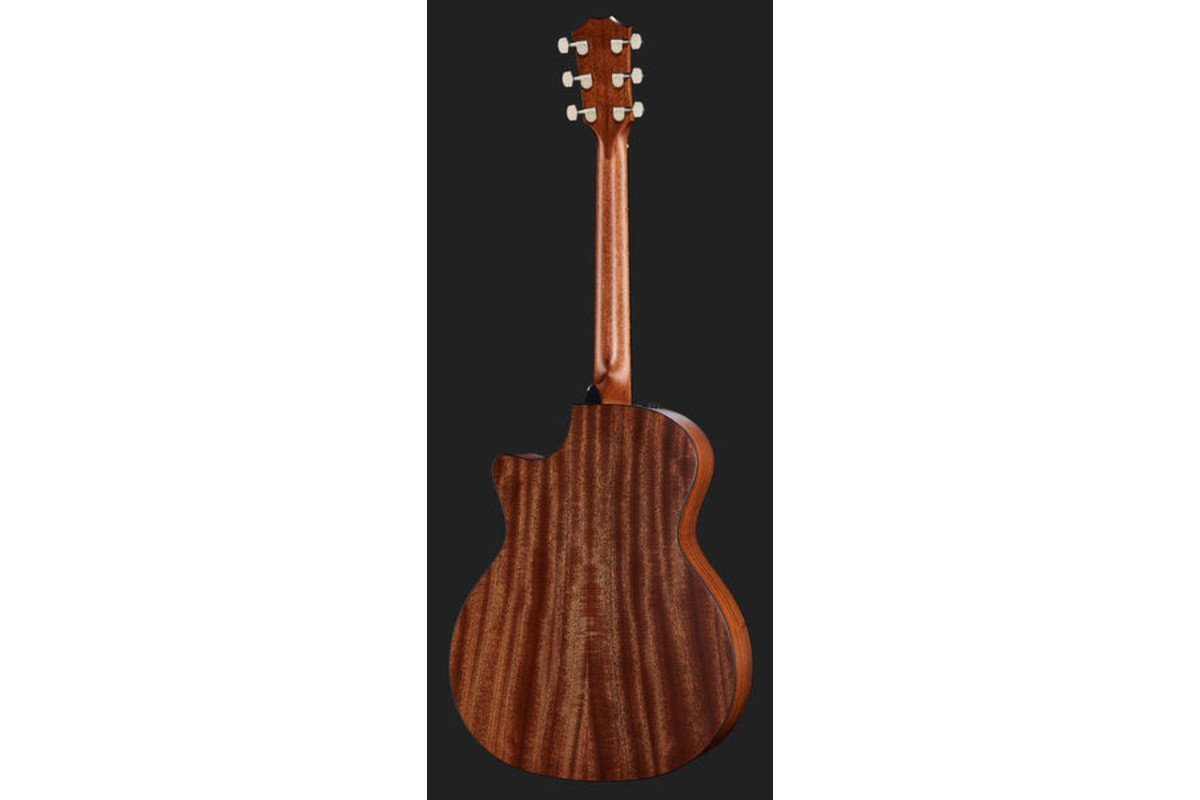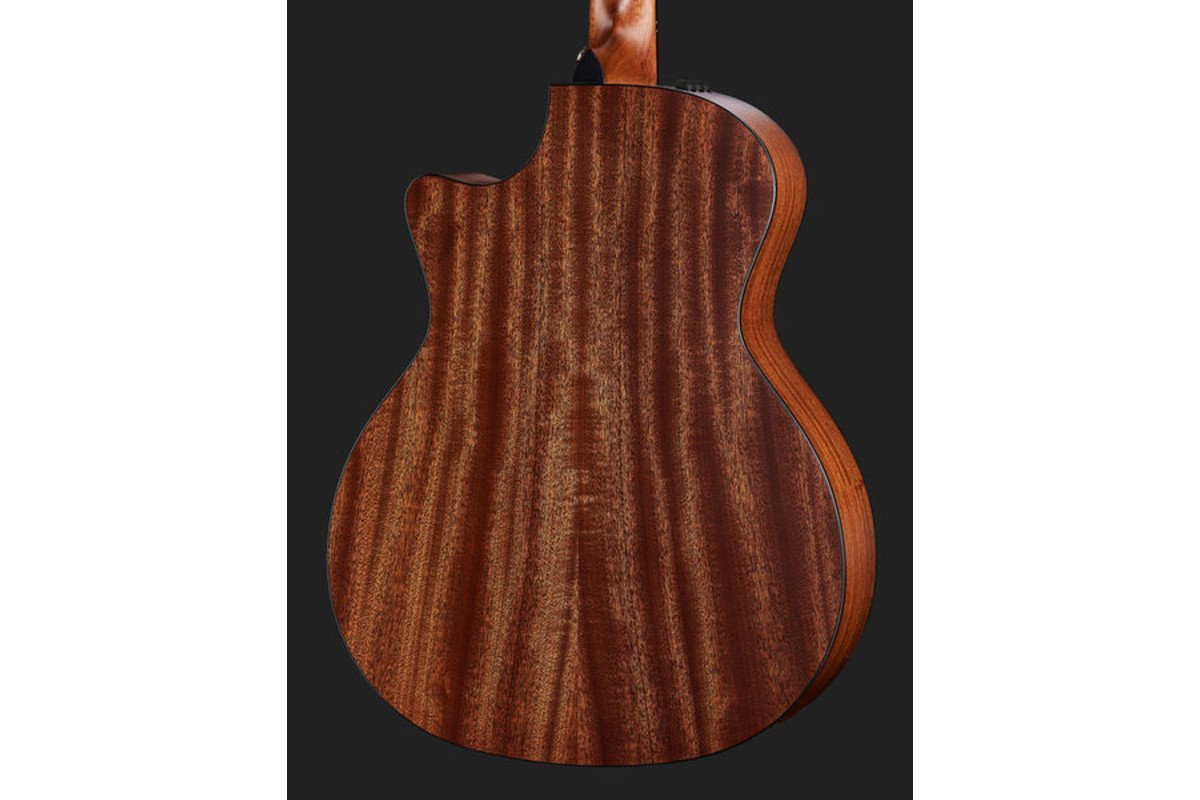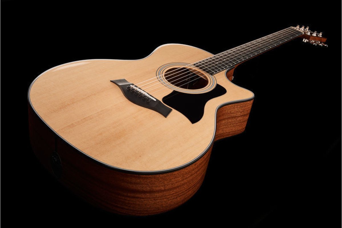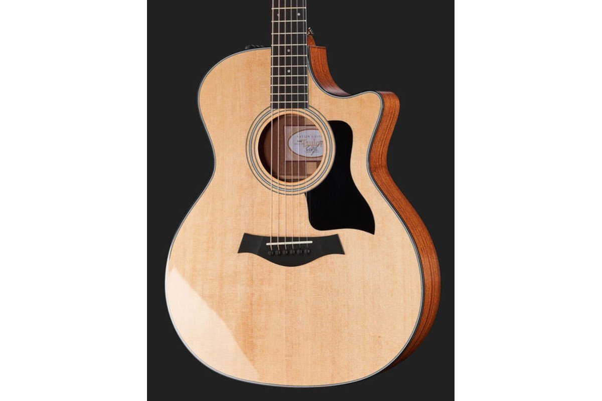 TAYLOR 314CE - електроакустична гітара в корпусі Grand Auditorium з лінійки «300 Series» з плавним венеціанським вирізом, який надає зручний доступ до верхніх ладів. Розмір і форма корпусу цієї моделі робить її ідеальною для будь-яких музичних стилів. Верхня дека з цілісної деревини ситхинської ялини дозволяє отримати широкий динамічний діапазон, яскравий і чистий звук. Нижня дека і обичайка виконані з деревини сапеле, яка дає потужні, відмінно сфокусовані середні частоти. Гриф з деревини махагоні з накладкою з чорного дерева (ебоні). Звукознімач Taylor's Expression System®2 передає всі нюанси акустичного звучання максимально чисто, дозволяючи досягти теплого, гучного і чіткого звучання при грі з підсиленням. Розетка красиво оформлена трьома кільцями.
