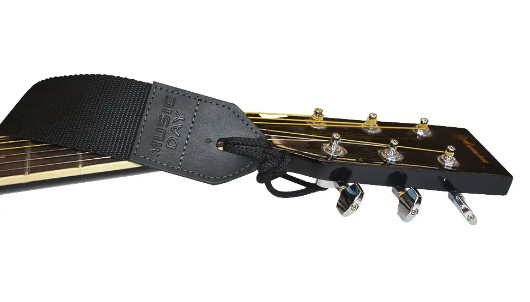 Пряжка з натуральної шкіри надійно фіксується до гітари в двох місцях: