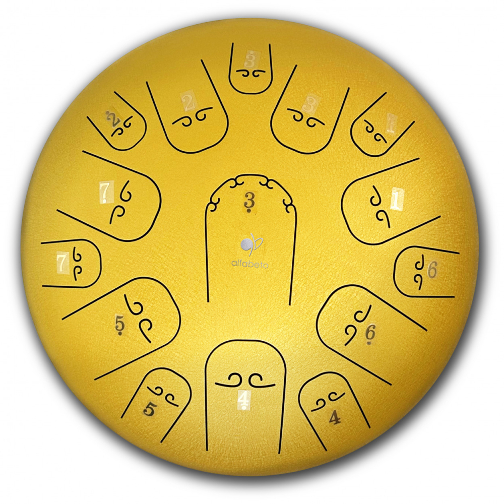 Головною особливістю цього ґлюкофону є його розмір - 14 дюймів і 15 пелюстків для гри. Кожна пелюстка вирізняється унікальним звуком, створюючи неповторний мелодійний спектр. Завдяки цьому, Ви зможете створювати чарівну музику навіть без спеціальних навичок.