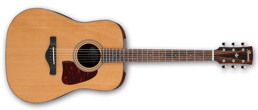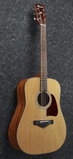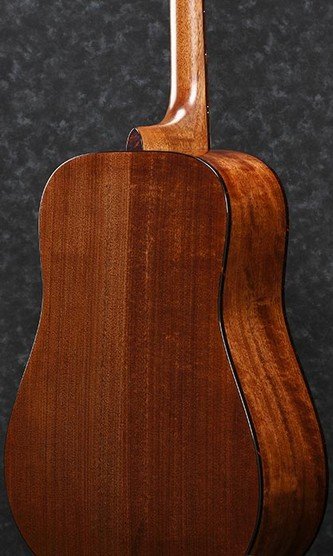 IBANEZ ArtWood AVD9-NT - прекрасна шестиструнна акустична гітара з лінійки Artwood Vintag e від відомого японського виробника в корпусі дредноут. Модель відрізняється природним, дуже чистим звуком з прекрасним резонансом. Особливість цього інструменту - використання в конструкції корпусу спеціальним чином обробленої деревини. Процес висушування дерева при високій температурі дозволяє надати матеріалу унікальні акустичні Характеристики. Така деревина отримала назву Thermo Aged ™. Модель представлена в натуральному кольорі. Покриття корпусу - глянцеве. Верхня дека AVD9-NT зроблена з цільної деревини ситхинской ялини, нижня деки і обичайка моделі - з червоного дерева. Гриф має форму Soft-V, він також виконаний з червоного дерева, ззаду гриф має матове покриття. На грифі 20 ладів з інкрустацією класичними точками. Накладка на гриф - з палісандра, радіус - 400 міліметрів. Палісандрове бридж забезпечує оптимальну передачу вібрації струн. Відкриті хромовані колки 18: 1 розташовані симетрично, 3 зверху і 3 знизу, дозволяють гітарі надійно тримати лад. На інструменті встановлені струни D'Addario® NB1253 Nickel Bronze товщиною .012-.053.