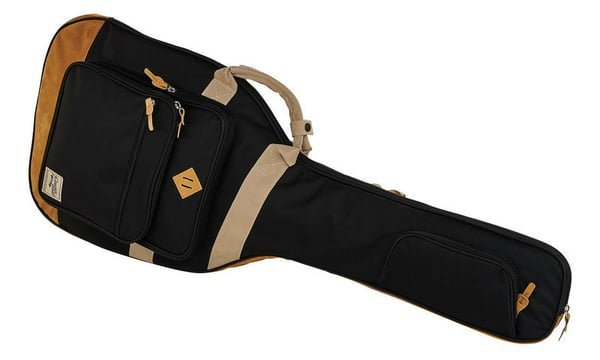 IBANEZ IGB541 BK - дизайнерський чохол утеплений для електрогітари серії PowerPad, розмір - 4/4, товщина: 25 мм - основна, 15 мм - бічна, колір - чорний зі вставками з коричневої замші, заплічні ремені з регулюванням довжини, ручка для перенесення, 3 кишені на блискавках.