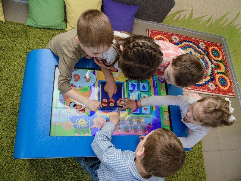 За рахунок технології мультитач, тобто одночасної роботи декількох користувачів, інтерактивний стіл підвищує рівень соціалізації дитини, сприяє розвитку навички командної роботи та підвищує рівень взаємодії.